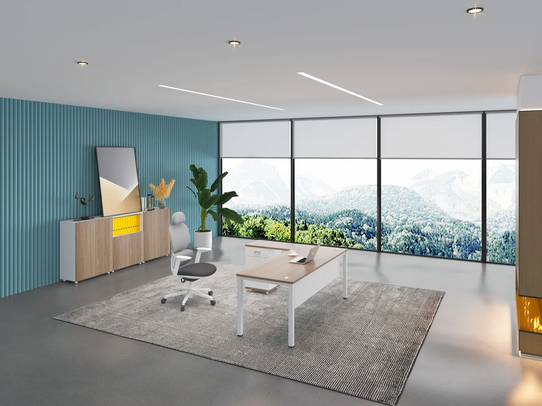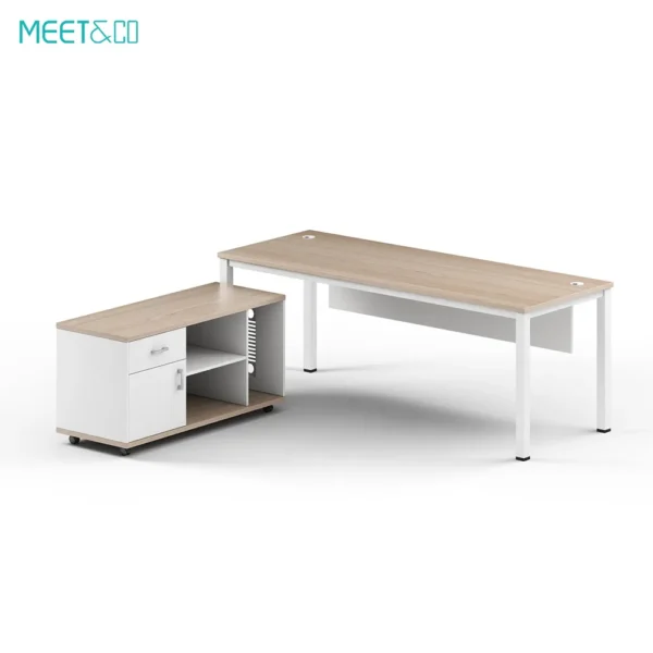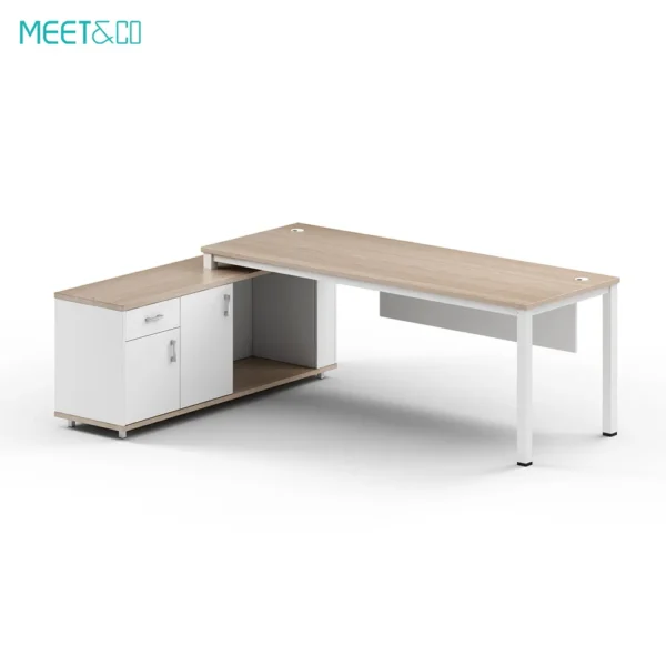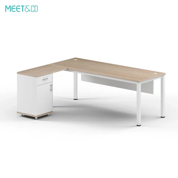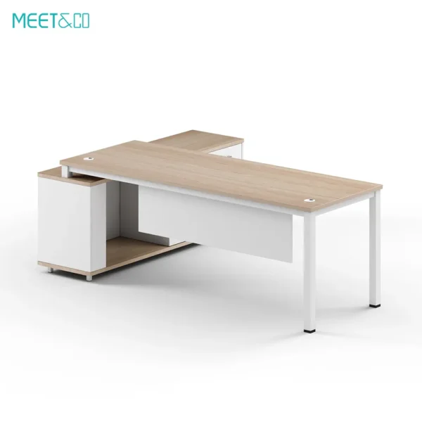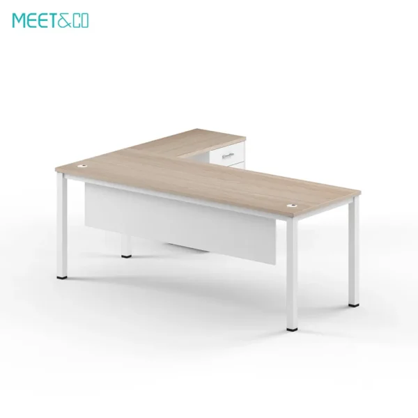 Este diseño no solo maximiza su espacio de trabajo, sino que también ofrece la flexibilidad de distribuir documentos, computadoras y otros elementos esenciales, asegurando que todo lo que necesita esté a su alcance.