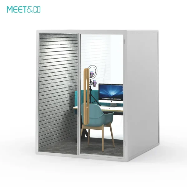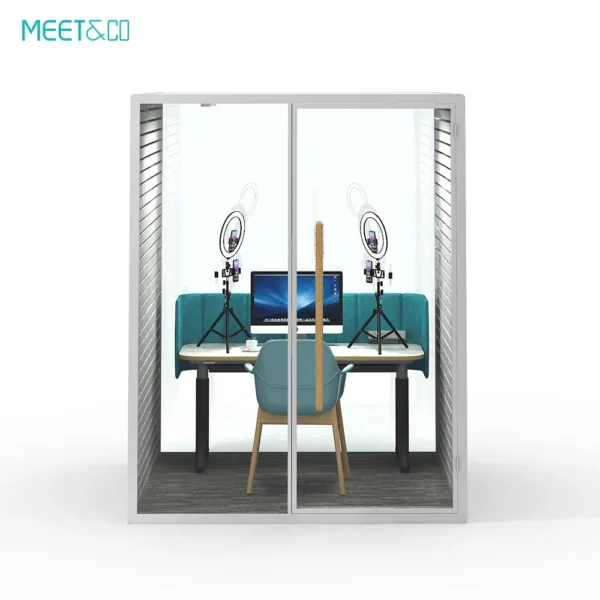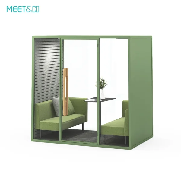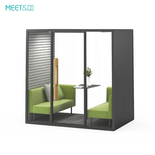 La cápsula de oficina Meet&Co Serie B ofrece una excelente insonorización, protegiéndole del ruido externo. Es el espacio ideal para conversaciones privadas, trabajo concentrado o reuniones, lo que le permite comunicarse y concentrarse sin distracciones.